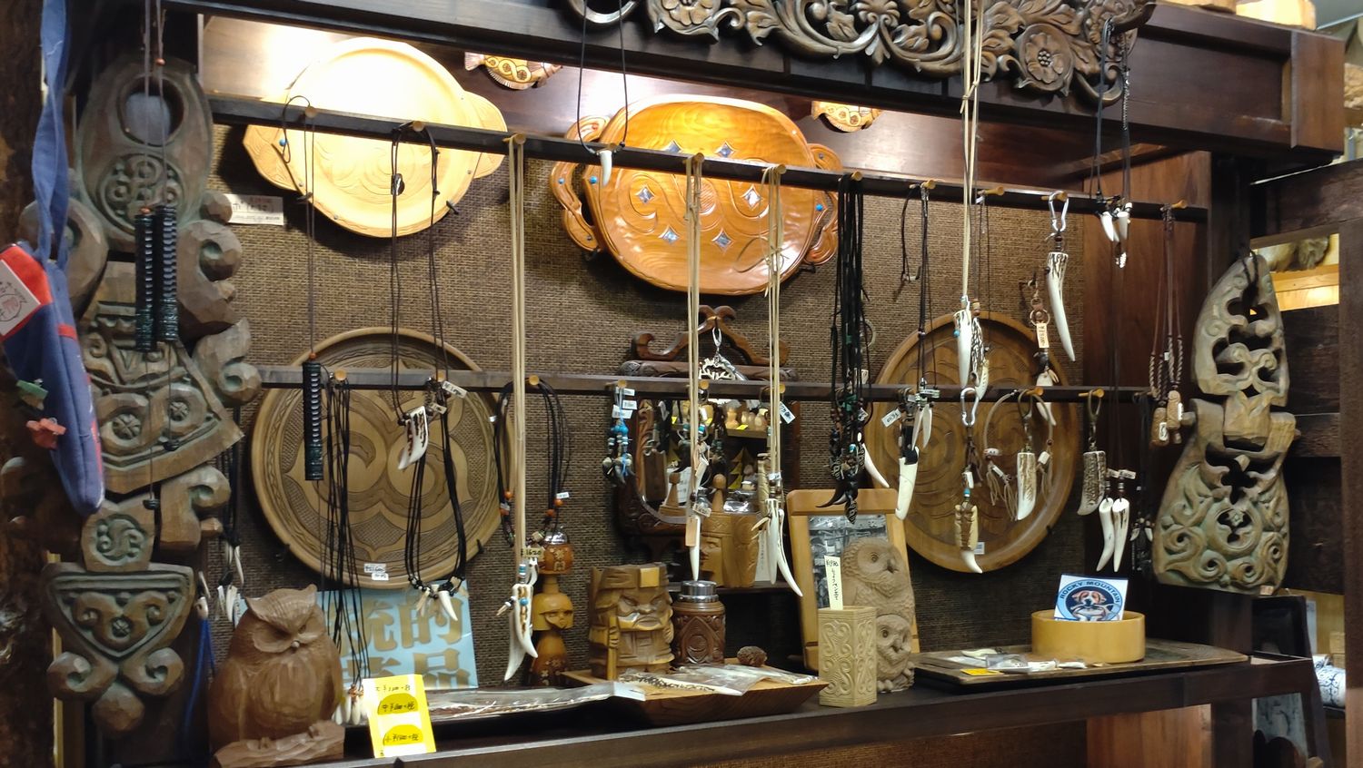 アイヌ文様のレリーフ サイズ:61×23㎝ 制作:1978年 材質:栓 北海道阿寒湖畔 熊の家所蔵