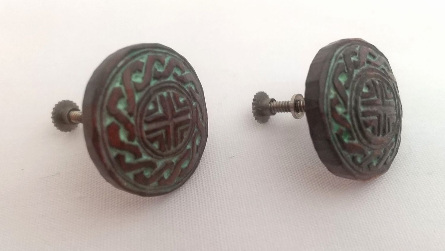 アイヌ文様のイヤリング サイズ:1.7×0.4㎝ 制作:1973年 材質:ツリバナ(エリマキ)