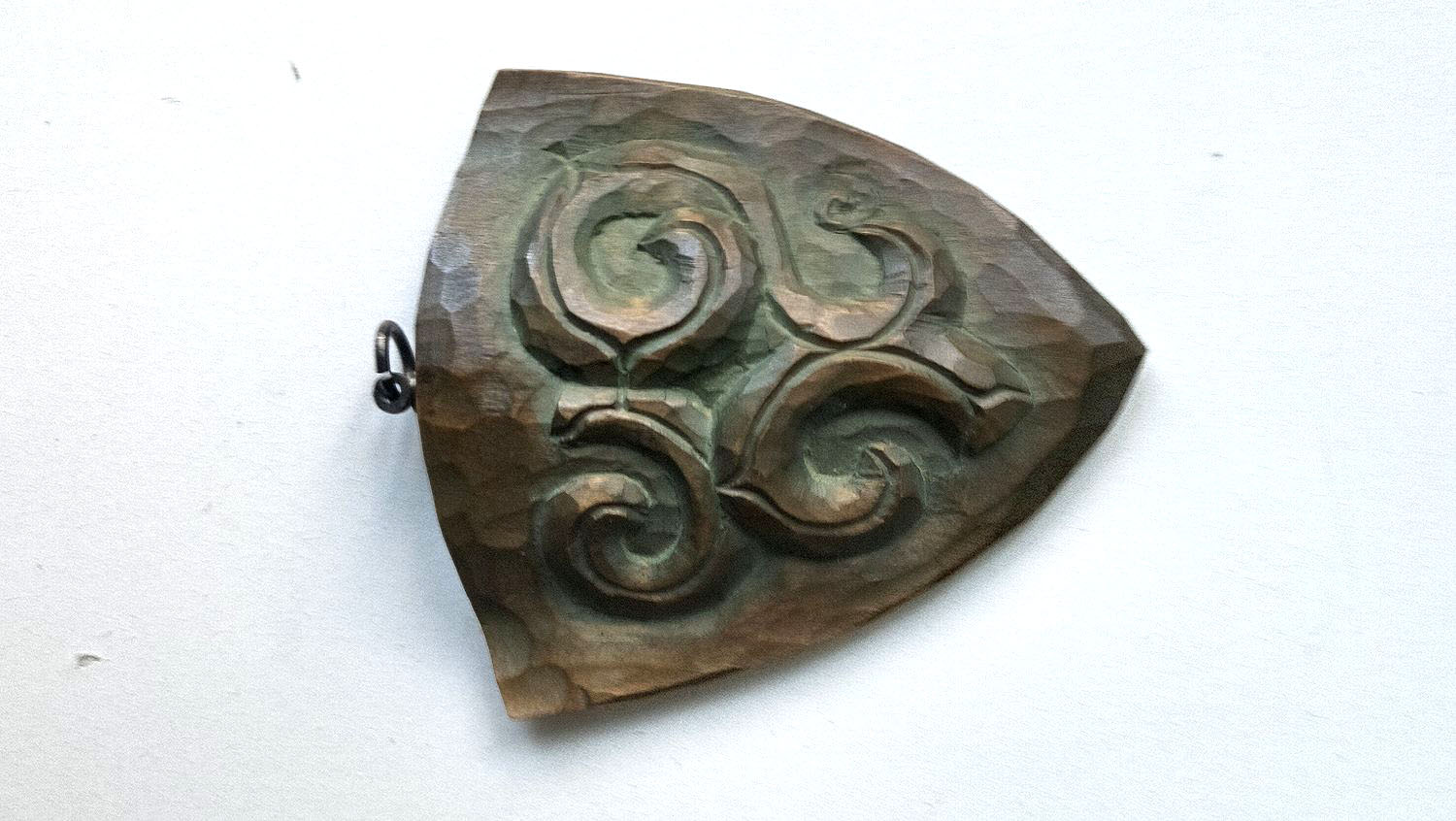 アイヌ文様のペンダントトップ サイズ:5.0×4.5×0.7㎝ 制作:1970年代 材質:ツリバナ(エリマキ) 札幌市 工藤様所蔵