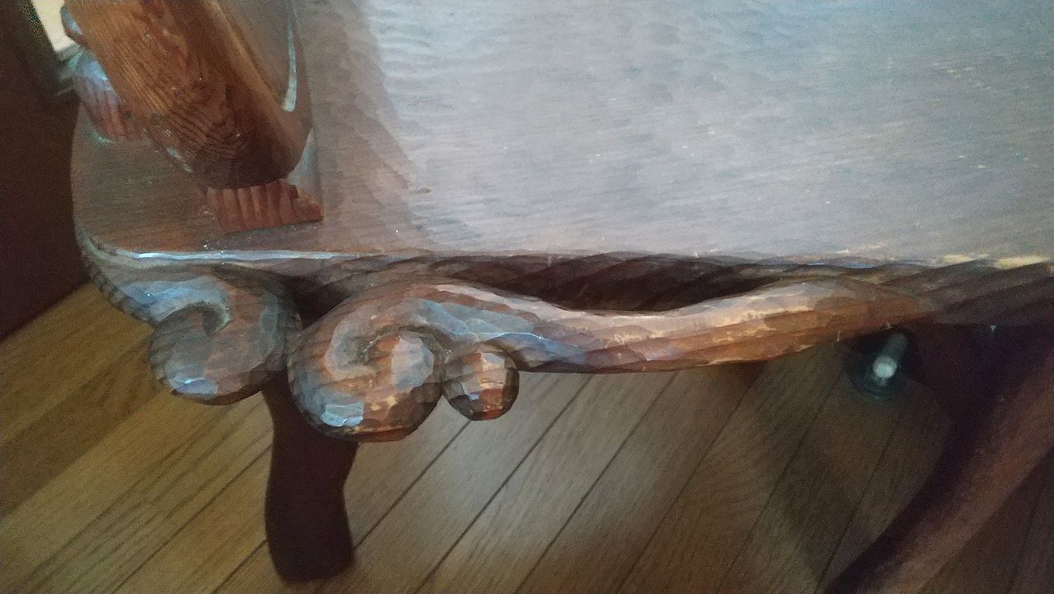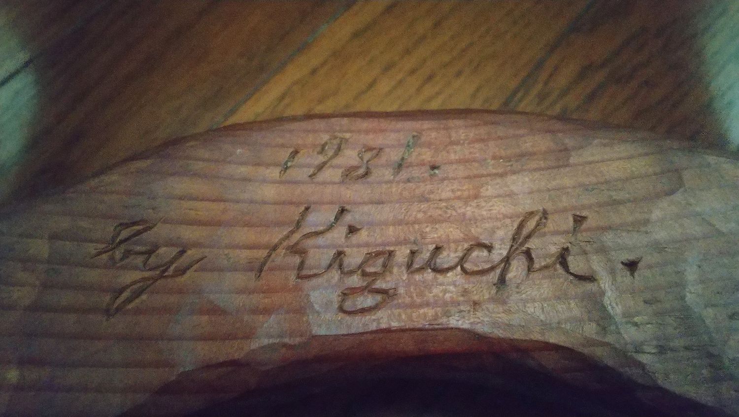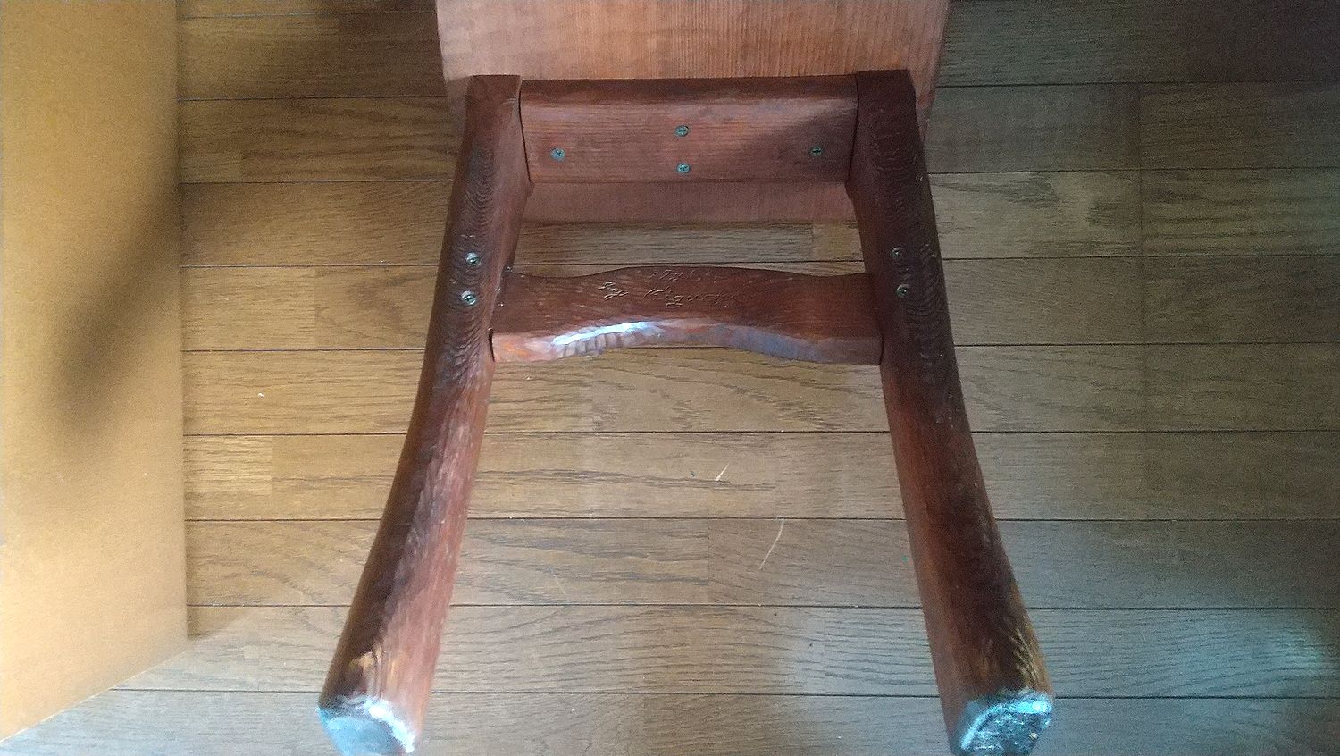 3本脚の椅子 背板にハープのモチーフ オーダーメイド サイズ:93.0×30.2×48.5㎝ 座面までの高さ42.3㎝ 制作:1981年 東京都 稲葉様所蔵
