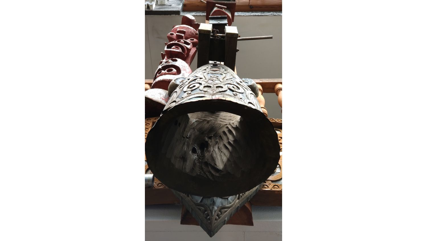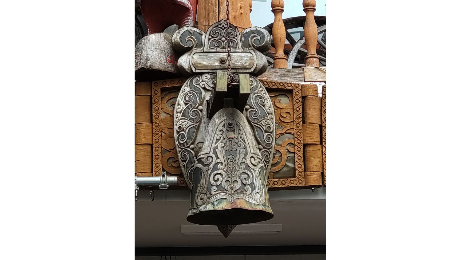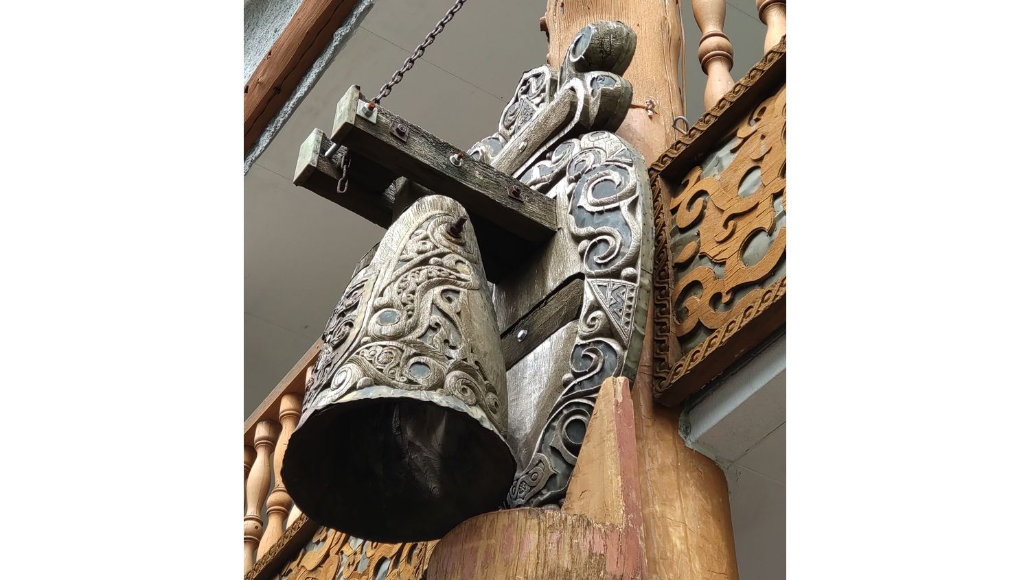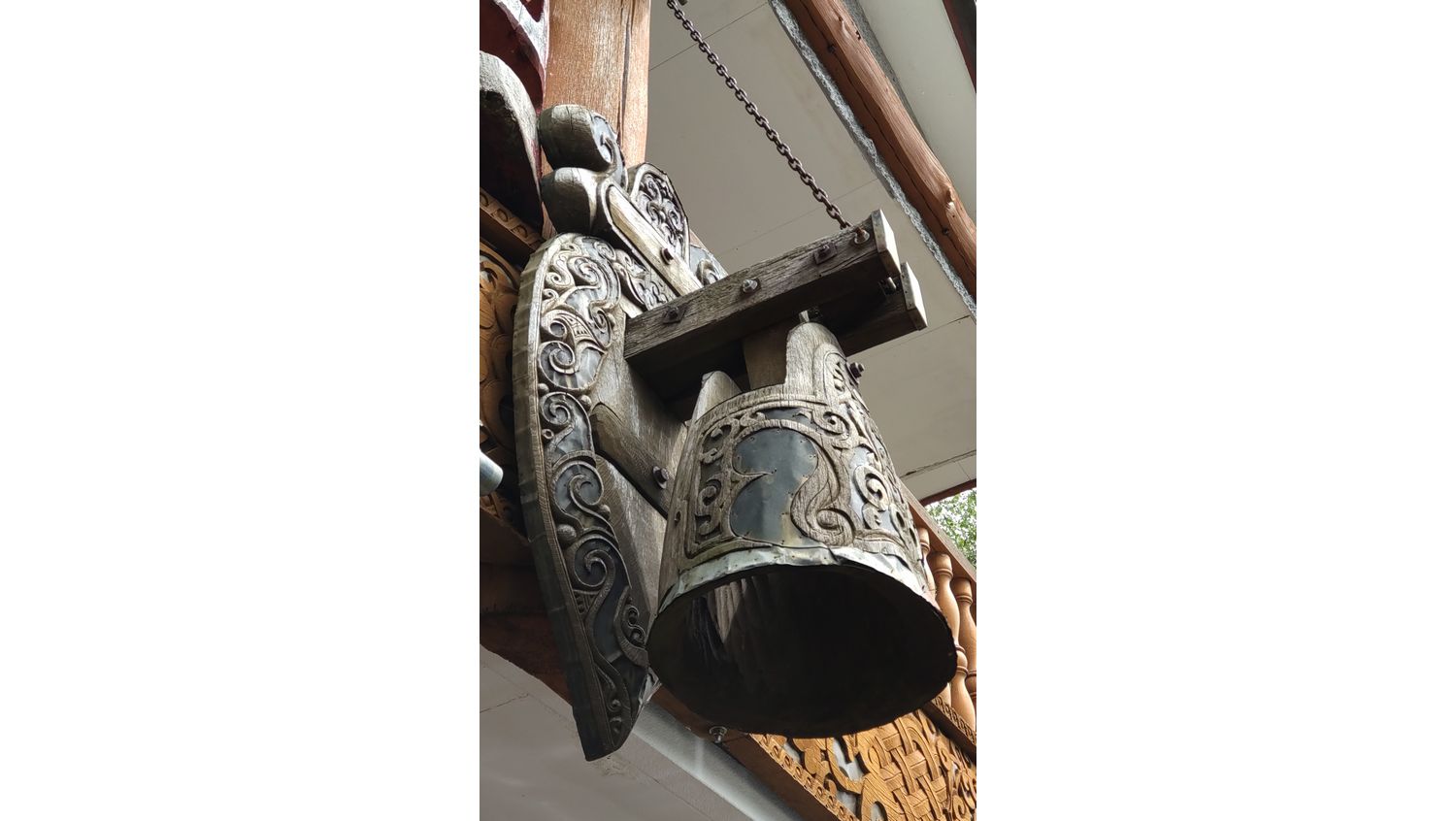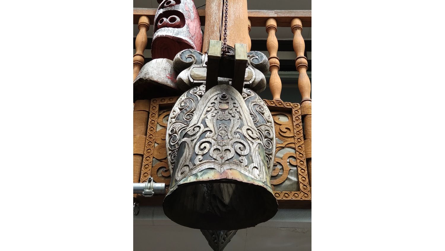 アイヌ文様の鐘 (文様に銅板を切り嵌め) 材質:栓
